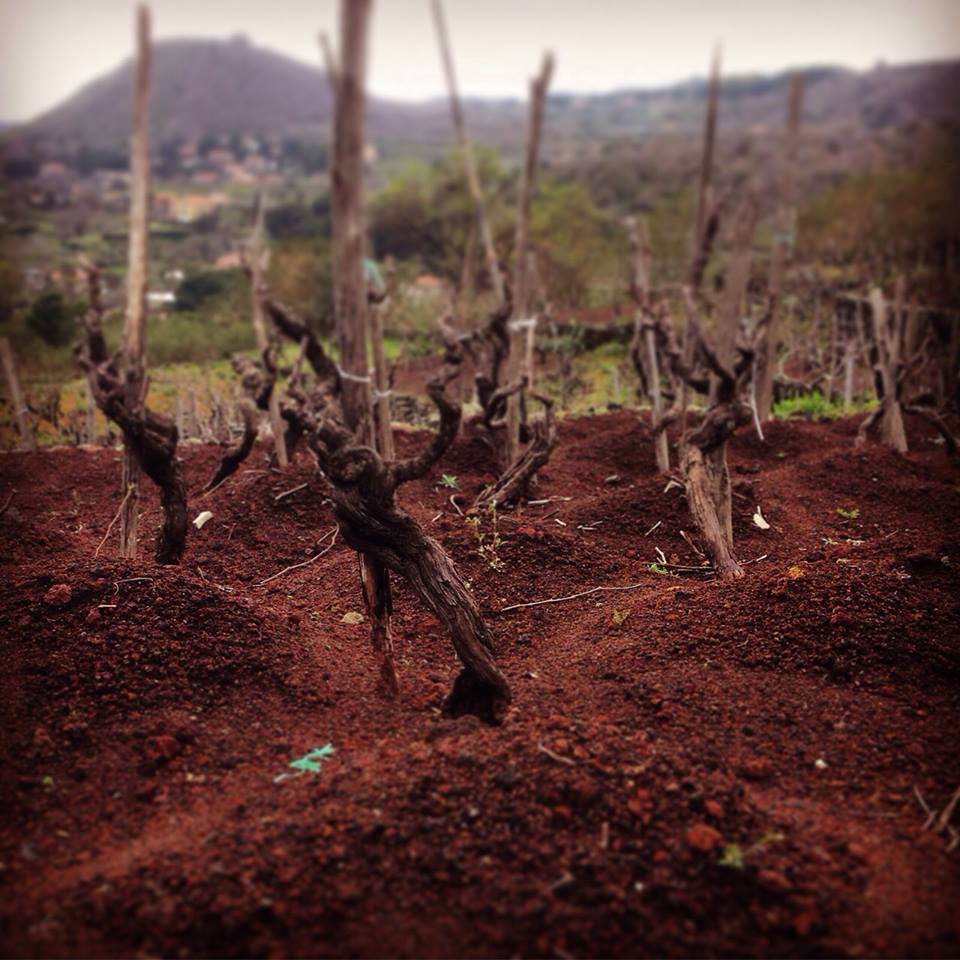 On walking atop Monterosso (one of Etna’s ferrous southeast craters), Lowe writes … “The higher of two craters thrown up the last time Catania was destroyed … [Monterosso is] a brilliant red, save where the vines clothe the steep sides. Arrived at the top, on looking down the concave crater, beautiful trees are seen to grow from whence the consuming fire once issued. Looking around, endless other volcanic hills appear crowding together over Ætna’s sides, to the number, it is said, of more than a hundred, which peculiarity makes her so different to other mountains. They are turned into vineyards, and everybody in the neighborhood who can afford it, has his own pet crater, and drinks the wine.”